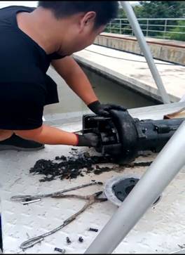 在檢修過程中,機(jī)修人員不怕臟、不嫌臭,直接下手將堵塞物、葉輪纏繞物一一清理出來,完美詮釋了污水人“一絲不茍、精益求精”的工作作風(fēng)和優(yōu)良傳統(tǒng)。正是有這么一群可愛的人,在平凡的崗位默默奉獻(xiàn),才保證了污水系統(tǒng)各個(gè)環(huán)節(jié)設(shè)備設(shè)施的正常運(yùn)行,進(jìn)而保證了出水水質(zhì)的穩(wěn)定達(dá)標(biāo)(張曉偉)。