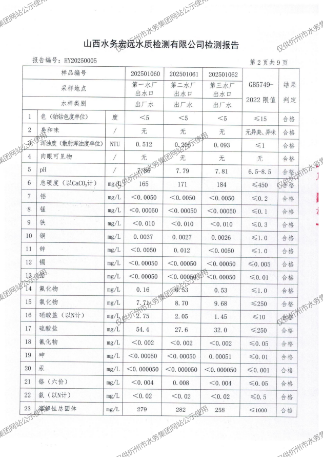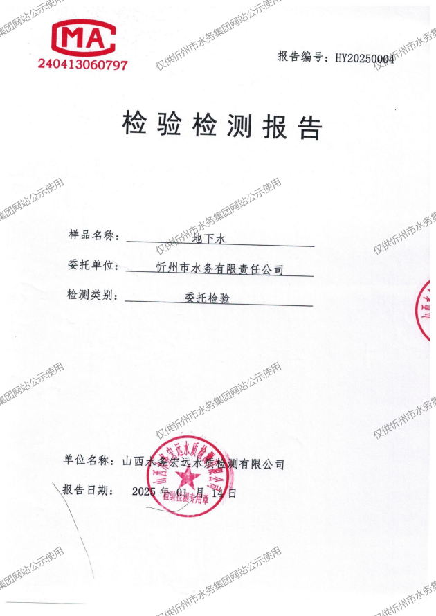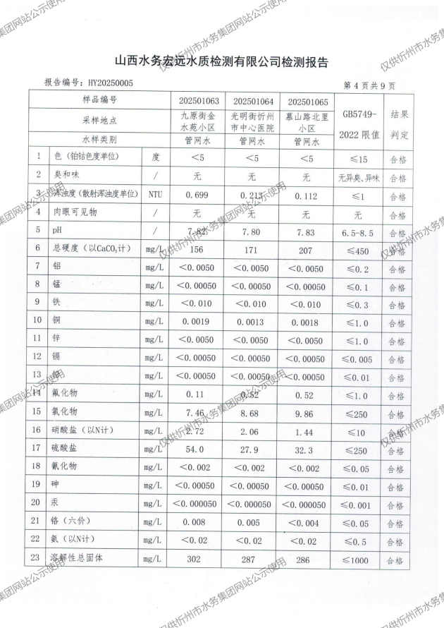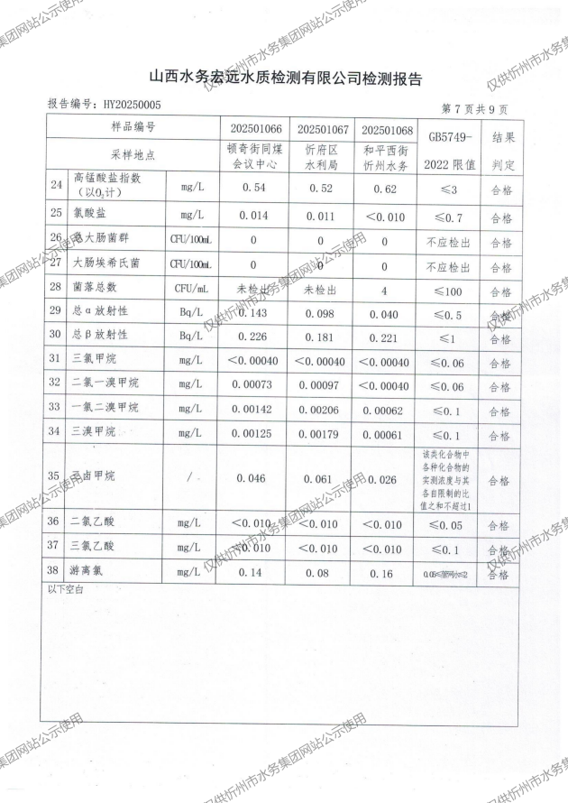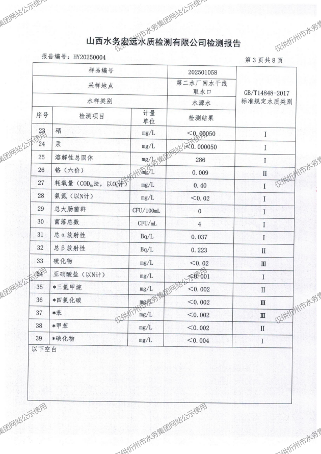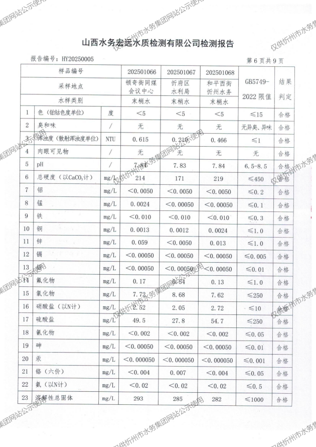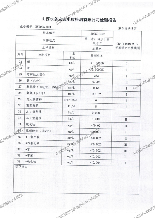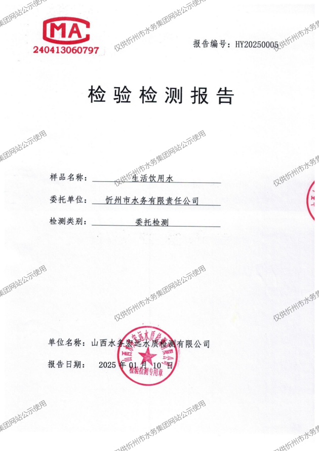 忻州城區(qū)公共供水水源水、出廠水、管網(wǎng)水、管網(wǎng)末梢水2025年01月份水質(zhì)信息公示