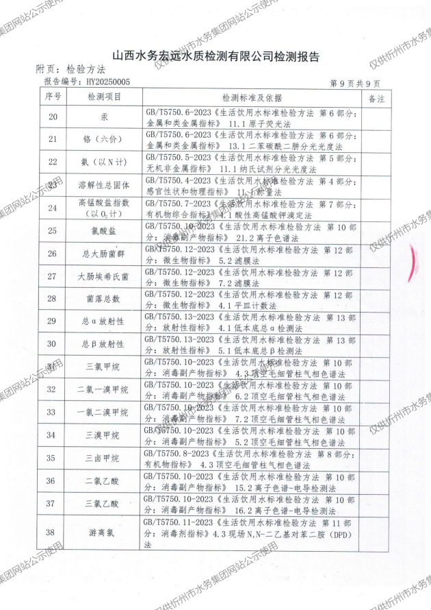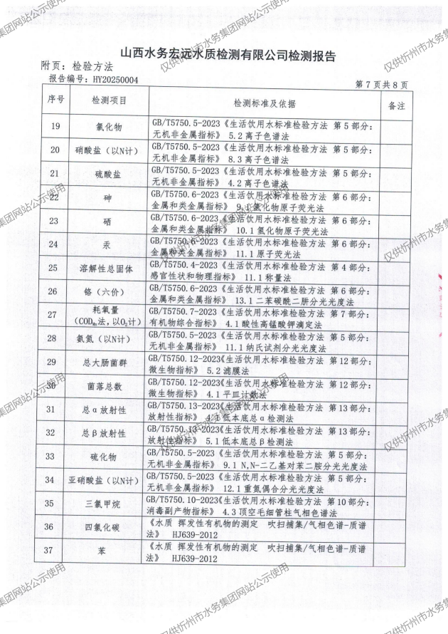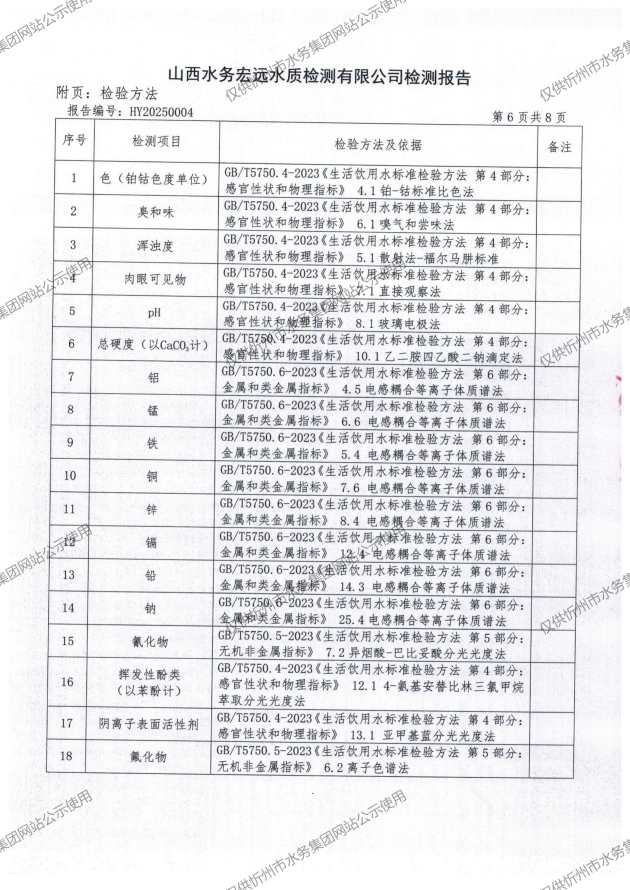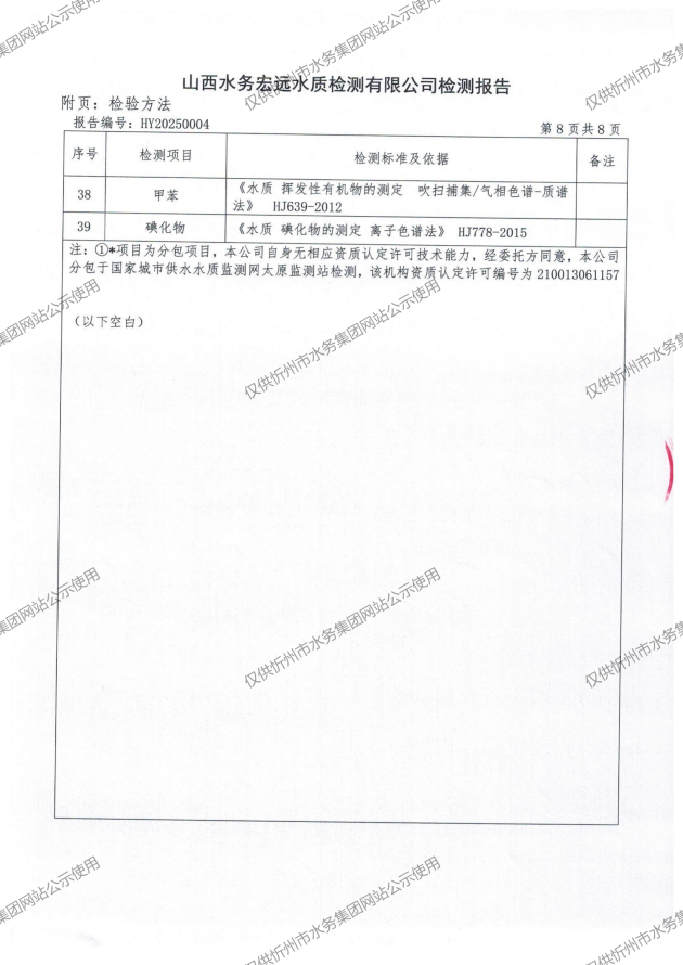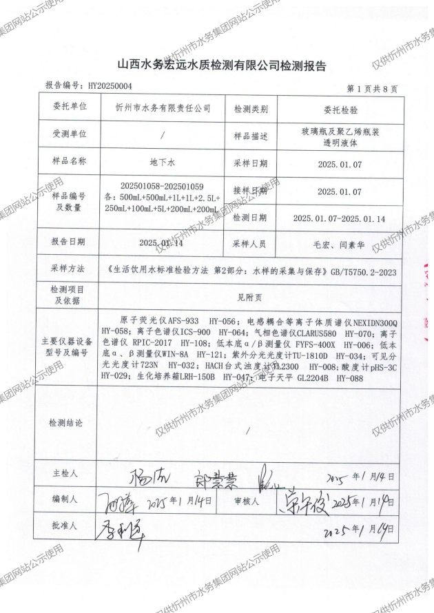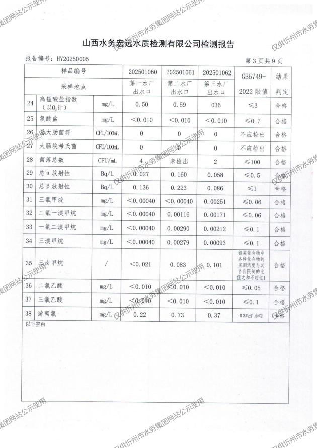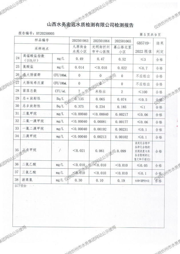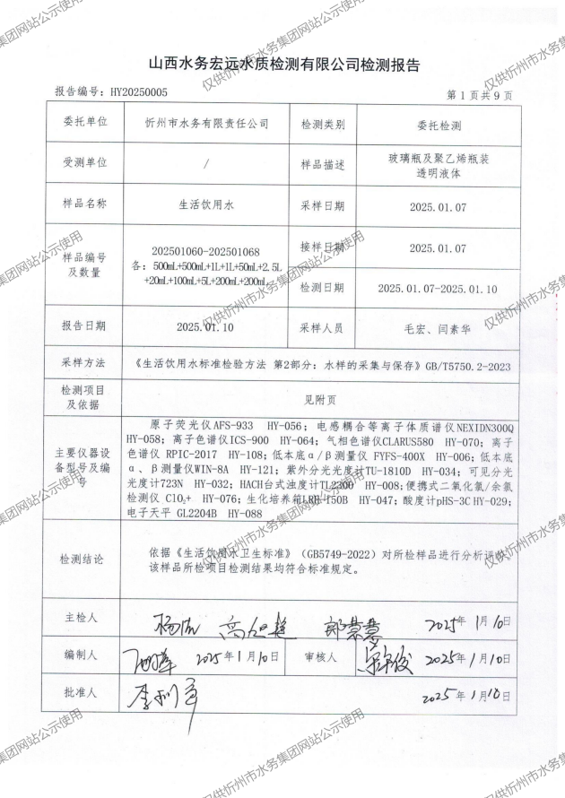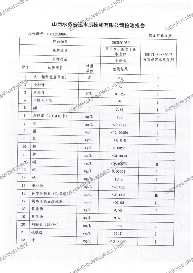 忻州城區(qū)公共供水水源水、出廠水、管網(wǎng)水、管網(wǎng)末梢水2025年01月份水質(zhì)信息公示