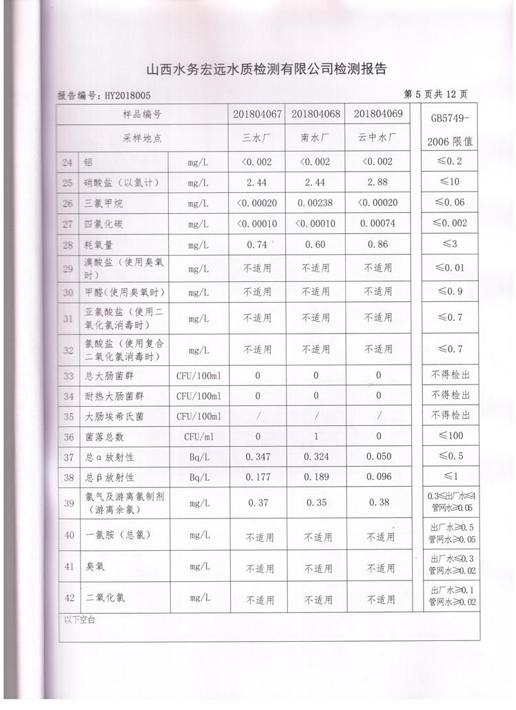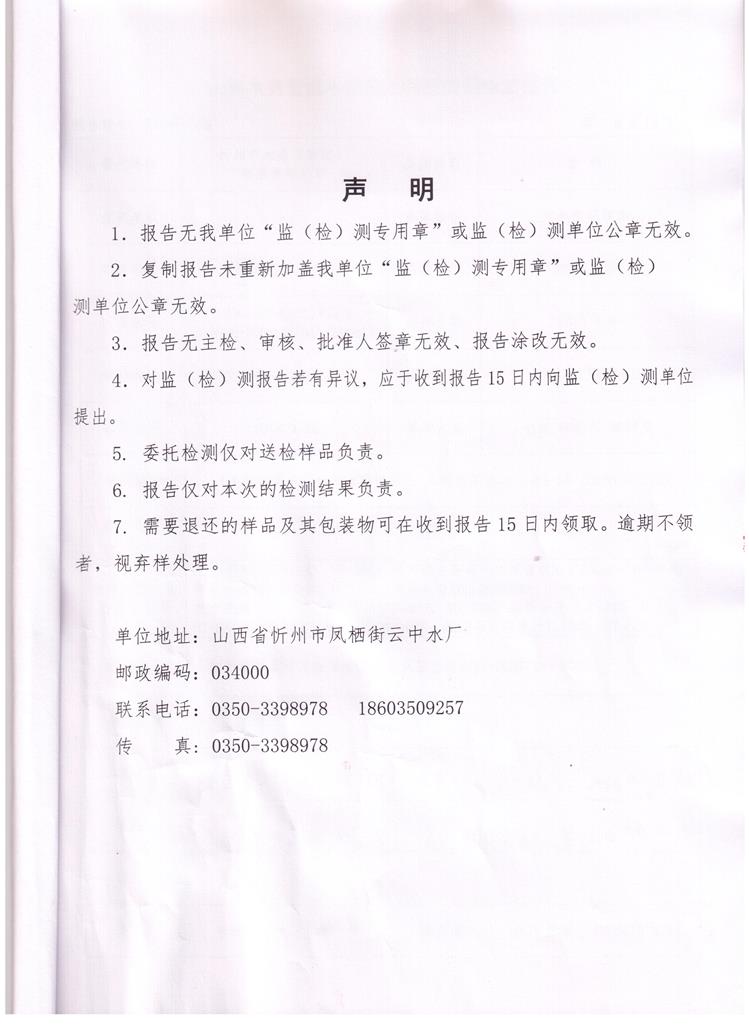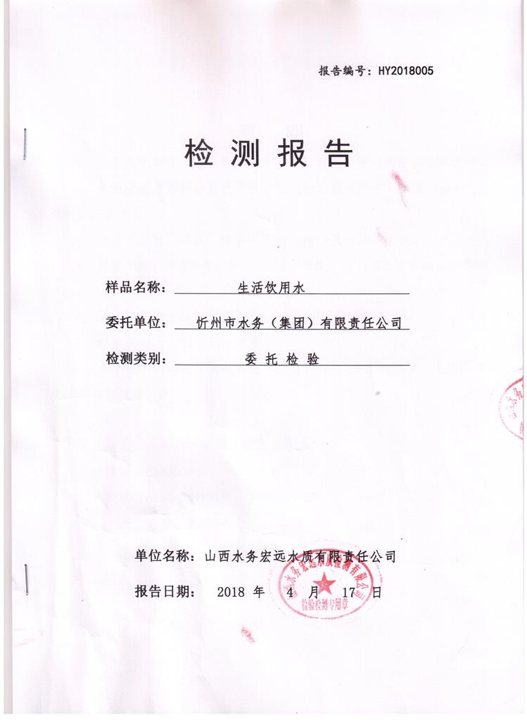 忻州城區(qū)公共供水水源水、出廠水、管網(wǎng)水、管網(wǎng)末梢水2018年4月份水質(zhì)信息公示